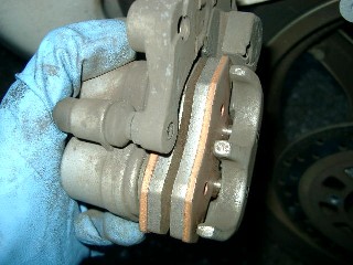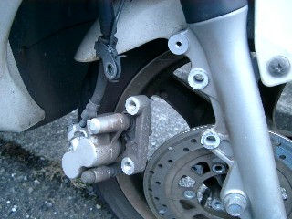 キャリパーを後方にずらしてディスクから離してやると、