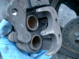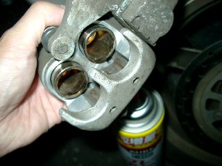 キャリパーの中をブレーキクリーナーで洗浄します。