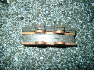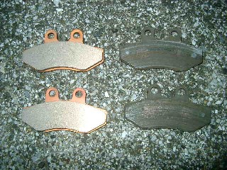 左が新品で右が使い古したブレーキシュー。