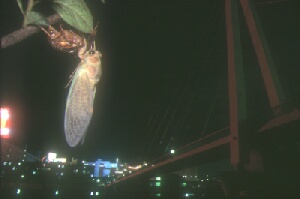 7月下旬から8月上旬にかけて、最も多く見られる。ドラマの撮影に使われることもある、かもめ橋(人道橋)をバックに撮影